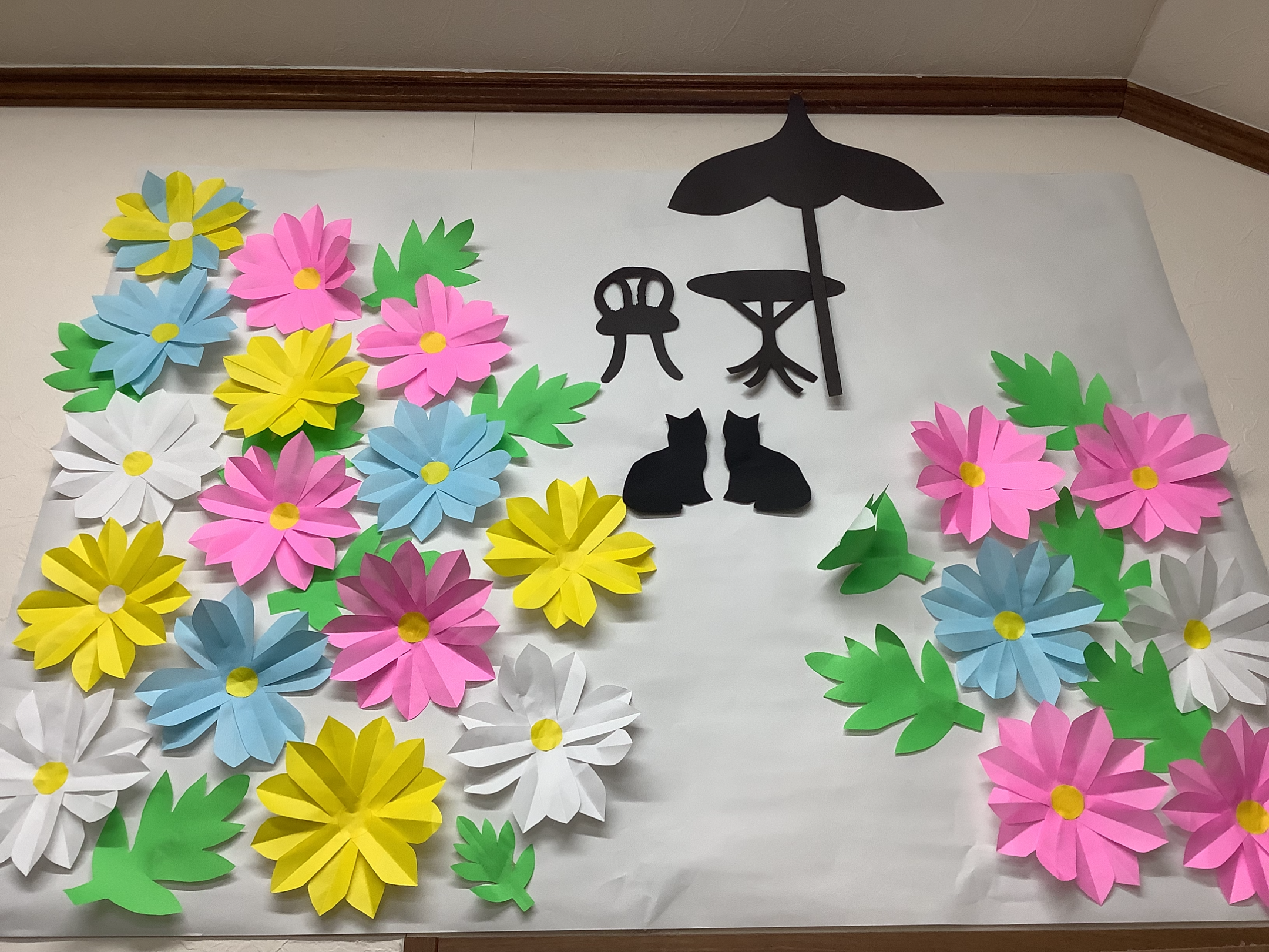 最近の文京デイサービスセンターでは、午後の余暇時間に壁面装飾つくりに取り組んでおります。